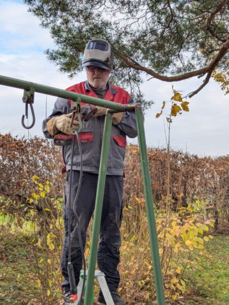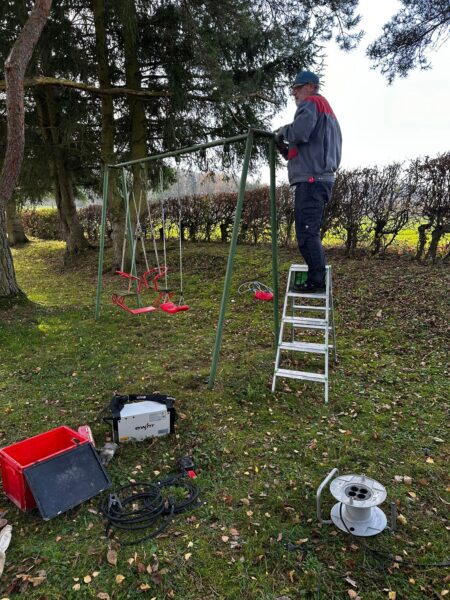 Sepp reparierte die Kinderschaukel, er hat geschweißt geflext und lackiert.